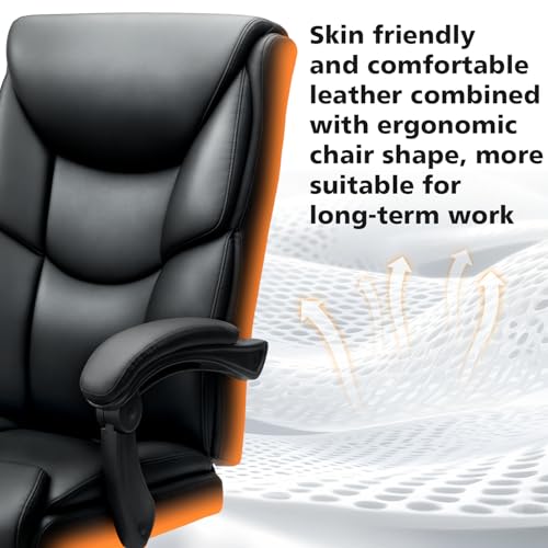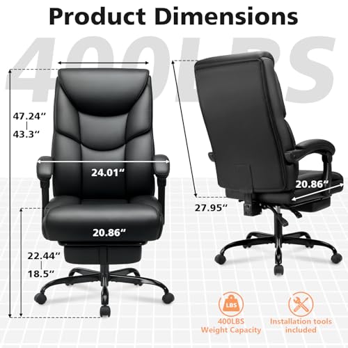 400lbs Office Chair with Foot Rest, Reclining Big and Tall Office Chair with Lumbar Support Spring Cushion, High Back PU Leather Computer Chair,Comfy Desk Chair for Home Office