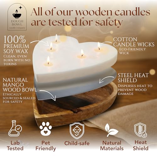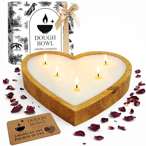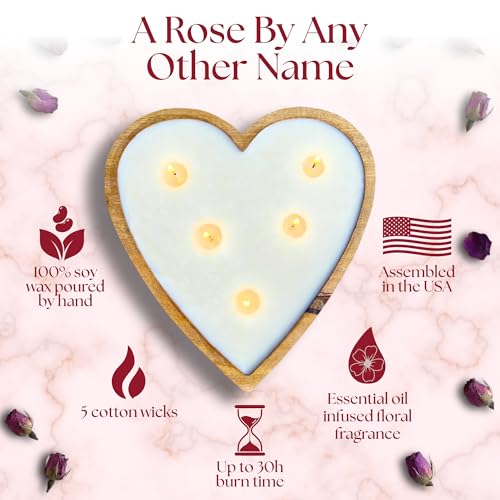 Dough Bowl Candle Co. Rose Candle – 10x10x2 Large Heart Shaped Scented Soy Candles for Women, Valentines Day Decor Gifts for Home, 5 Wick White Decorative Natural Aromatherapy, 30 Hour Burn Time