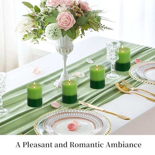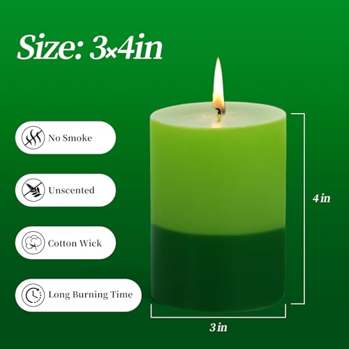 KONNI Green Layered Pillar Candles Set of 3, 3″x 4″ Unscented Pillar Candles Bulk, 39 Hours Long Burning Candles, Smokeless&Dripless Large Round Candle for Wedding, Home Decoration, Parties, Dinner