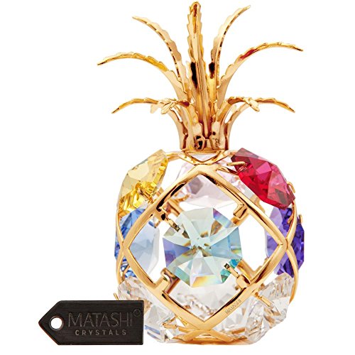 EYE-CATCHING DESIGN: A vibrant pineapple clings tightly to its leafy base in the rich tropical soil, The prickly skin hiding its juicy yellow flesh from sight. All who pass can practically taste its sweet flavor tingling on their tongues and watering their taste buds. Crafted with quality materials like 24K Gold and studded with precision cut Matashi crystals.