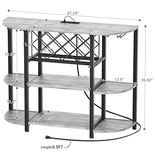🔋【Wine Bar Cabinet with Power Outlets】When you want to put a coffee maker or ice maker on top of a wine rack table, you’ll want to put it near an outlet. But our liquor bar rack with outlets can solve this annoying problem. It has three built-in plugs and two USB ports to provide power for your various small kitchen appliances, and you can also put your audio on it and use the USB port to power it. When you drink wine and listen to music, how wonderful! The length of the cable is 6.56FT long.